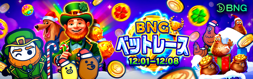 BNG主催の『BNG クリスマスベットレース』は、対象ゲームをプレイして獲得した、各ラウンドのベット額に応じて計算された、ポイント数を競うトーナメントです。