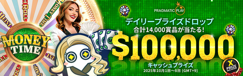 この新作ライブゲームのリリースを記念して、Pragmaticは、『Money Time Prize Drops』プロモーションを開催します。