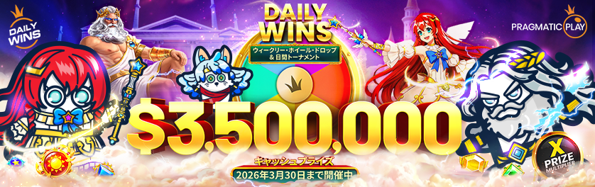 それでは、Pragmatic Play主催『Daily Wins Season 8 Level 12』-Weekly Wheel Drops & Daily Tournamentsをご紹介いたします。
