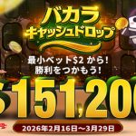 ①『Daily Wins Season 8 Level 12』-Weekly Wheel Dropsは、2026年3月2日 01:00から2026年3月30日00:59(GMT+09:00)まで開催され、賞品総数は100,000本、$205,600相当の賞金が贈られます。