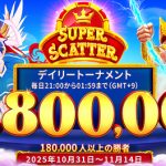 Pragmatic Playのスロットゲームをプレイして、シングルスピンの最高スコアを他のプレイヤー様と競い、最も高いスコアを獲得したプレイヤー様の上位は毎日開催されるトーナメントで賞金を獲得できます。