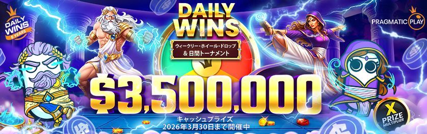 それでは、Pragmatic Play主催『Daily Wins Season 8 Level 8』-Weekly Wheel Drops & Daily Tournamentsをご紹介いたします。