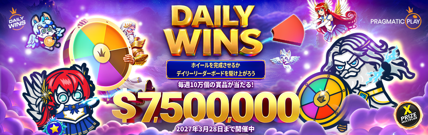 それでは、Pragmatic Play主催『Daily Wins Season 9 Level 2』-Weekly Wheel Drops & Daily Tournamentsをご紹介いたします。