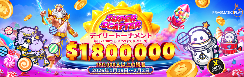 そこで、Pragmatic Play主催「Super Scatter デイリートーナメント」では、182,000人の勝利者が総額$1,800,000相当の賞金を手に入れるチャンス到来です🎉