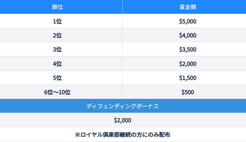 ● 賞金及びディフェンディングボーナスは2026年3月3日(火)に配布